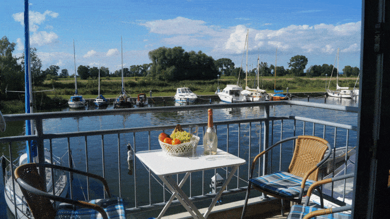 Hier wohnt ihr in einem echten Jachthafen! Die gemütlich eingerichtete Ferienwohnung liegt bei Ueckermünde in Mecklenburg-Vorpommern und verspricht euch mit dem tollen Hafenambiente romantische Urlaubstage. Genießt die Sonnenuntergänge auf eurem Balkon und beobachtet die vorbei segelnden Jachten bei einem Gläschen Sekt oder Wein. Für Ausflüge bieten sich unter anderem das nahe Stettiner Haff, die Insel Usedom mit den Kaiserbädern oder das schöne Städtchen Swinemünde an. Oder ihr stattet einfach dem direkt an der Ferienwohnung gelegenem Sandstrand einen Besuch ab, legt euch in die Sonne und genießt das Faulenzen.