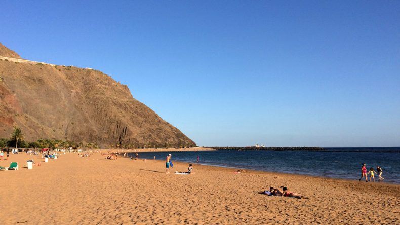 Ihr wollt lieber richtig im Atlantik baden und nicht im Schwimmbecken? Auch kein Problem. Falls ihr im Süden Teneriffas unterwegs seid, empfehle ich den Steinstrand in Playa San Juan. Er liegt direkt in einer kleinen Hafenanlage und ist durch Wellenbrecher geschützt. Aber Vorsicht: Bei den vielen Steinen unter den Füßen müsst ihr vorsichtig laufen. Wer es lieber sandig weich mag findet ein paar Minuten nördlich der Inselhauptstadt Santa Cruz die Playa de Las Teresitas, welche ebenso durch Wellenbrecher geschützt ist. Das Besondere: Es handelt sich hier um einen künstlichen Strand, aufgeschüttet mit Sand aus der Sahara. Hier ist es fast wie an der Ostsee: Keine Strömung und ideal zum Plantschen.