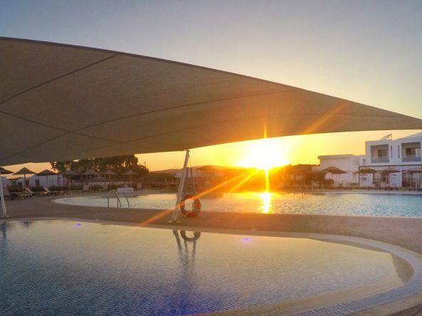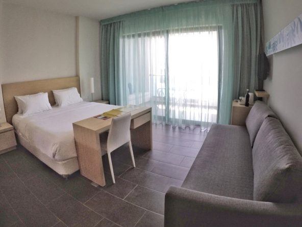 Nach einer längeren Anreise vom Flughafen Rhodos zum Club, stieg meine Vorfreude und Erwartung, diesen endlich kennenzulernen. Und was soll ich sagen? Bei der Ankunft im Club präsentiert sich mir eine architektonische Glanzleistung. Weiße, zweistöckige Gebäude, stylische Einrichtung, Plaza mit Wasserspielen. Die ersten Pluspunkte sind schon vergeben. Mein Doppelzimmer ist modern, mit großem Badezimmer. Die Anlage ist ruhig und so kann ich irgendwie noch nicht ganz glauben, dass es eine auf Familien ausgerichtete Clubanlage ist.