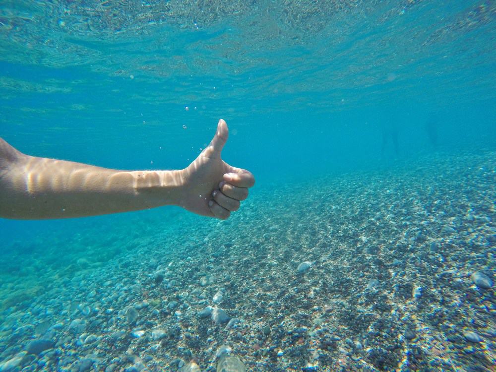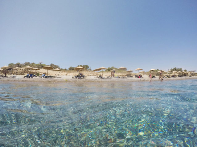 Mir ist das alles zu viel Trubel und so ziehe ich mich zurück an den Strand…aaaaah Entspannung. Hier liegen zwar ein paar Steine am Meeressaum, dafür werde ich aber mit glasklarem Wasser belohnt.