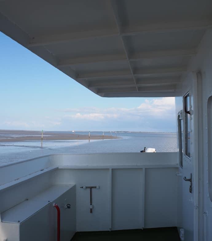 Während der ca. 30-40 minütigen Fährüberfahrt könnt ihr euch schon einmal den Wind um die Nase wehen lassen und euch auf eure Zeit auf Langeoog freuen.