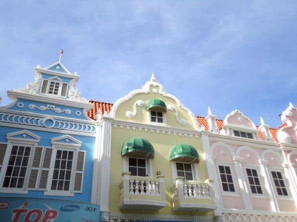 Ich bin begeistert von der bunten Lebendigkeit Arubas. Die Hauptstadt Oranjestaad mit ihren pastellfarbenen Bauwerken im niederländischen Stil ist kein bisschen hektisch. Hier wird regelmäßig restauriert und gestrichen, damit der eigenwillige Charme der ehemaligen holländischen Kolonie erhalten bleibt.