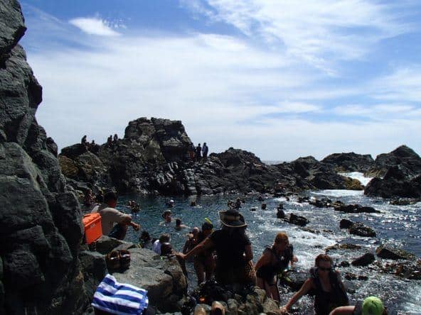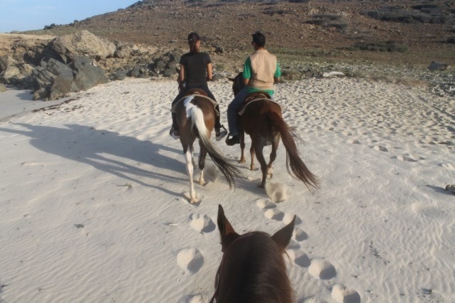 „Alternative?“, frage ich. „Na, zu Pferd geht auch“, antwortet der Ranger und grinst. Ein PS ist deutlich besser als 100, finde ich zumindest. Gute Entscheidung, wie sich rausstellt. Der Guide, der unsere Gruppe führt, heißt Yella. Schwarze Augen, lässige Blue Jeans, kerzengerader Sitz im Sattel. „Wir reiten zu den Natural Pools“, sagt er. Die Formation aus natürlichen Felsbecken wird vom Meer ständig mit frischem Wasser durchgespült. Wir können baden, aber bitte dann wenn nicht gleichzeitig die Jeep Safari dort Station macht – und rund sechs Dutzend Touristen gleichzeitig ins Wasser gehen.