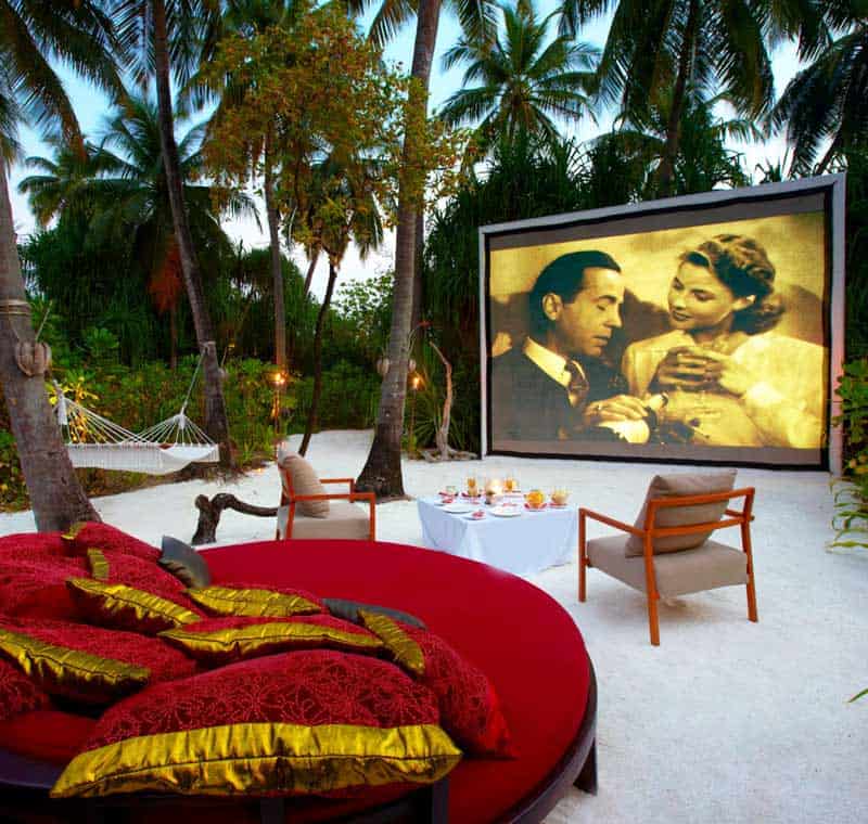 Auch für die Unterhaltung ist im Soneva Fushi****** bestens gesorgt. Wie wäre es mit einem Film-Klassiker im Open-Air Kino am Strand? Die gemütlichen Liegen und das üppige Snack Angebot mit Popcorn und über 60 verschiedenen Sorten Eiscreme sorgen dafür, dass du es dir beim Kinoabend unterm Sternenhimmel so richtig gemütlich machen kannst. Na dann Film ab!