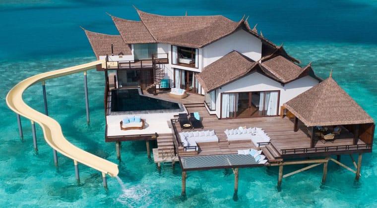 Aber das OZEN Reserve Bolifushi****** hat noch mehr Besonderheiten zu bieten. Seit geraumer Zeit gibt es nun Wasserbungalows mit eigener Wasserrutsche die direkt ins Meer führt (Infinity Pool Ocean Villa with Slide). Die kommen dir irgendwie bekannt vor? Kein Wunder, denn die außergewöhnlichen Villen sind ein absoluter Trend in den sozialen Medien geworden. Verständlich, denn wer würde nicht gerne nach dem Aufstehen direkt vom Schlafzimmer ins türkisblaue Meer rutschen?