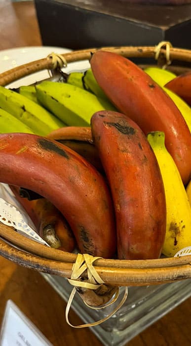 Rote, gelbe und grüne Bananen