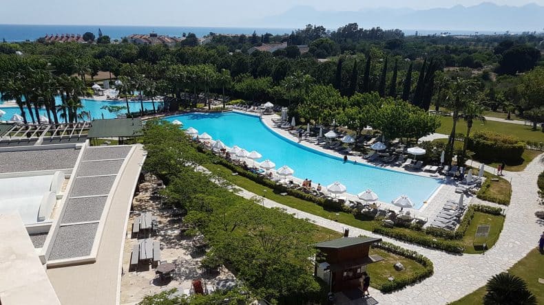 Eine großzügige grüne Oase auf 110.000 qm, nur 12 km vom Flughafen Antalya entfernt., ist das 5-Sterne-Hotel Lara Barut Collection. Hier heißt es Wohlfühlen für alle. Die Außen- und Innenanlagen bieten viel Platz für Privatsphäre und Aktivitäten jeglicher Art. Wasserraten erfreuen sich besonders an den 5 Wasserrutschen, den 5 Pools und der direkten Strandlage. 9 Restaurants sorgen ebenso dafür, dass jeder genau das richtige Angebot findet. Außerdem könnt ihr einen perfekten Service von der Rezeption über Animation bis hin zur Servicekraft erwarten. Ein eingespieltes Team, welches sich für das Wohl jedes einzelnen Gastes interessiert und sich aufmerksam kümmert. 2018 wurde das Lara Barut Collection komplett renoviert.