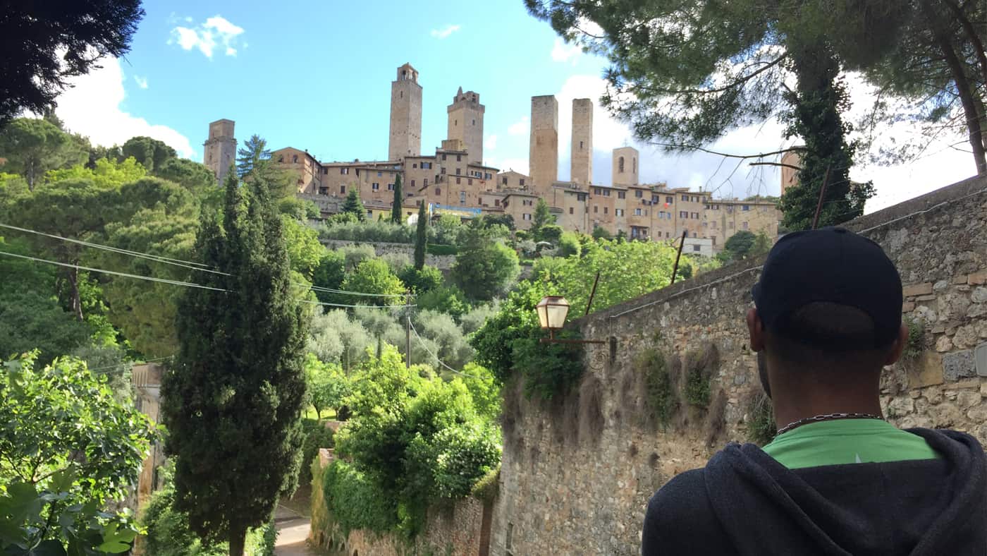 Mein Tipp: Von der Turmruine im Park della Rocca hat man ebenfalls einen tollen Blick zu den Türmen und muss diesen nur mit vergleichsweise wenig Touristen teilen.