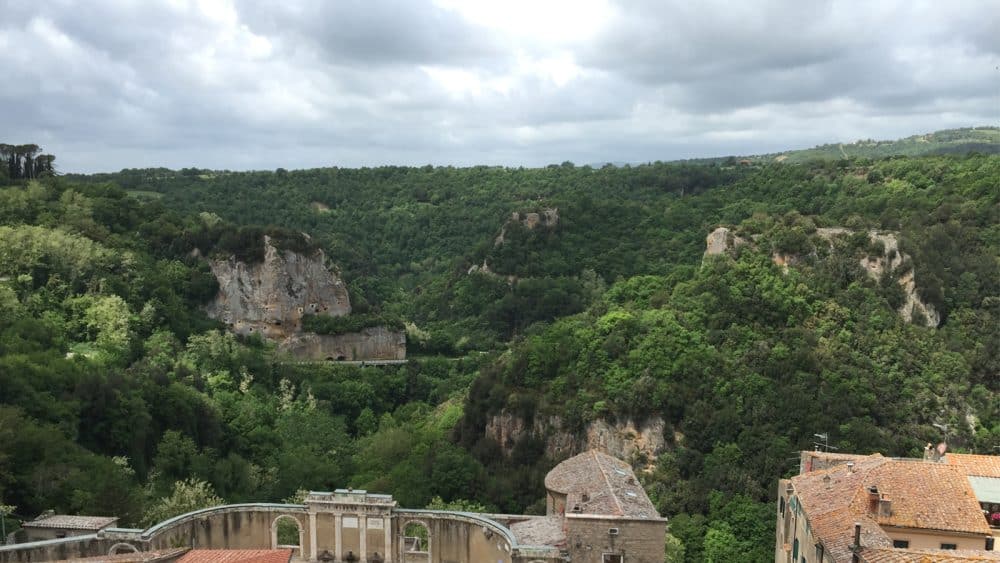 Eigentlich sind wir dankbar für die Sperrung, denn mit etwas Abstand betrachtet sind es doch diese kleinen unvorhergesehenen Abenteuer, die einem lange in guter Erinnerung bleiben. Als wir dann nach gut 3 Stunden in Sorano ankommen sind wir überwältigt. Alleine der Blick von der anderen Seite der Schlucht auf die Stadt ist grandios und als wir fast allein durch die mittelalterliche Stadt spazieren, fühlen wir uns um ein paar Jahrhunderte zurückversetzt. Kleine Handwerkskunstläden laden zum Shoppen ein und die vielen malerischen Ausblicke auf Gassen, Gebäude und die umliegende Schlucht ziehen Hobbymaler und Fotografen an.