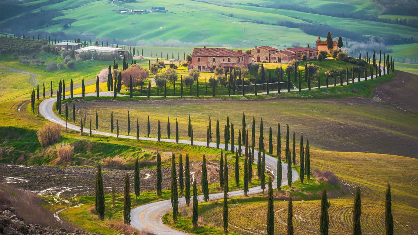 Auf dem Weg in Richtung Süden fahren wir an sanften Hügeln vorbei, auf die häufig eine Zypressen-Allee zu einem einsamen Haus mit typischen roten Flachdach führt. Die Felder strahlen dabei in einem angenehmen gelb-grün und am Morgen liegt häufig ein weicher Nebelschleier in den Senken.