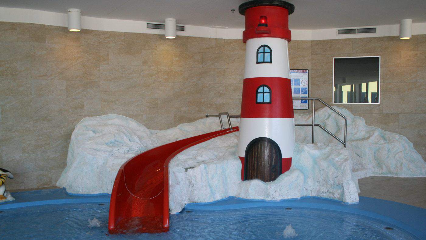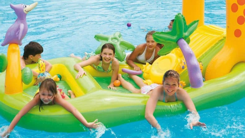 Von dem Splashpool mit integrierten Wasserrutsche und der Indoor-Kletterwand werden deine Kids sicherlich noch lange schwärmen!