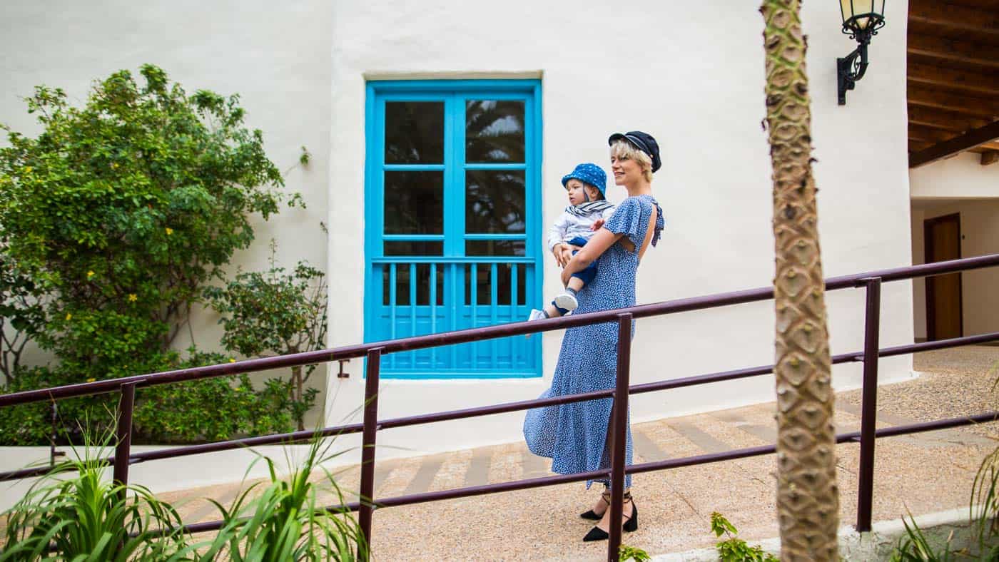 Die Malediven, Mexiko, die Kanaren – bereits jetzt sammeln sich Reiseerinnerungen und etliche Stempel im Kinderreisepass unseres eineinhalbjährigen Sohnes Neon, die von seinen großen und kleinen Abenteuern erzählen. Denn statt ihn bei Oma und Opa zu lassen, nehmen wir Neon seit seiner Geburt regelmäßig einfach mit auf unsere vielen Reisen, die wir mal privat, mal beruflich für unseren Lifestyle- und Reiseblog uberding.net antreten. Am liebsten laufen wir Hand in Hand durch die Sonne und spüren dabei feinen Sand unter unseren Füßen. Wie schön, wenn wir genau das im eigentlich noch kalten März erleben dürfen. Nach nur 4 Flugstunden klettert der Wetterfrosch von 5 °C auf frühsommerliche 20 °C. Wir sind dann mal im Frühling, hallo Fuerteventura!