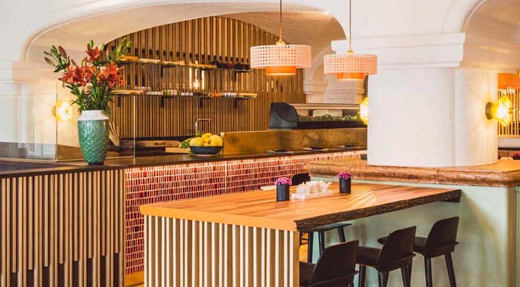 Zwischen den beiden Höfen, die liebevoll Catherina und Valentina getauft wurden, befindet sich in einem hellen Pavillon das bereits erwähnte Gourmetrestaurant Dichterstub’n. Es ist mit 2 Michelin Sternen und 17 Gault Millau Punkten ausgezeichnet.