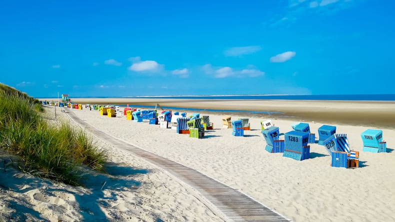 Langeoog ist eine der sieben ostfriesischen Inseln im Wattenmeer. Wer hier Urlaub macht hat die Wahl: Entweder entspannt im Strandkorb sitzen oder draußen aktiv sein. Autos müssen auf dem Festland bleiben, das typische Fortbewegungsmittel ist das Fahrrad. Fast zwei Drittel der Insel gehören zum Nationalpark Wattenmeer, dem UNESCO-Weltnaturerbe. Eine geführte Wattwanderung ist ein Muss: Ob Gezeitenwanderung, Wanderung zur Muschelbank, Wattsafari oder Kulinarikwanderung, du hast die Qual der Wahl. Die weiten Sandstrände und Dünenlandschaften von Langeoog erstrecken sich über 14 Kilometer, in der Hochsaison säumen zahlreiche Strandkörbe den West- und Oststrand.