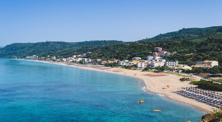 Wer einen schönen Familienurlaub an einem der schönsten Strände Griechenlands verbringen möchte, ist am feinen 10 Kilometer langen, flach abfallenden Sandstrand auf Westpeloponnes genau richtig.