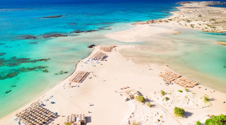 Hier kommt wahres Karibikfeeling auf: Weißer Sandstrand, Palmen und türkisfarbiges Wasser sind die Highlights vom Elafonissi Beach auf Kreta. Besonders die rosafarbenen Spuren der Korallen sorgen am Ufer für ein spektakuläres Naturschauspiel. Warum so weit fliegen, wenn die Malediven doch so nah scheinen?