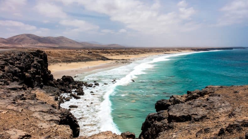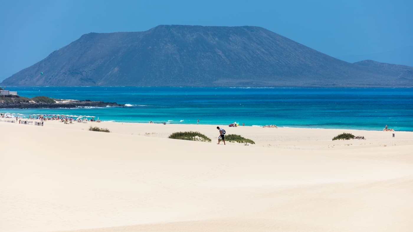 Die Insel, die Afrika am nächsten liegt, ist relativ flach und weist eine karge Vulkanlandschaft auf. Sehenswert sind die Sanddünen im Parque Natural de las Dunas de Corralejo im Norden. Der Ort Corralejo selbst ist sehr touristisch, aber auch ganz charmant mit vielen Geschäften, Restaurants und Bars. Corralejo ist vor allem für seinen Dünenstrand mit glasklaren, türkisblauen Wasser und einem flachen Einstieg bekannt. Wenn du Lust auf einen Inselhopping-Trip hast, kannst du von Corralejo aus eine Fähre nach Lanzarote oder zur kleinen unbewohnten Insel Lobos nehmen.