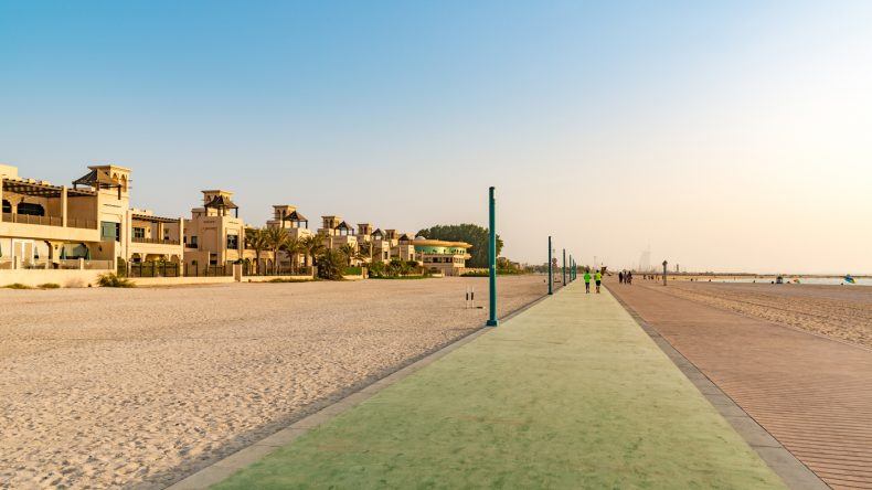 Was ihr wissen müsst: Die meisten Strände in Dubai gehören zu den einzelnen Hotels und ich würde daher jedem empfehlen eine Unterkunft mit Zugang zum eigenen Strand zu buchen. Insgesamt gibt es nur wenige öffentliche Strände. Die Mehrheit davon befindet sich bei der Jumeirah Street. Eine Promenade verbindet die Strände miteinander. Parallel dazu verläuft eine Joggingstrecke mit glattem Boden, um jegliche Sportarten direkt am Beach auszuführen. Die Dubai Strände unterscheiden sich insgesamt nicht sonderlich voneinander was die Beschaffenheit betrifft, nur der Fokus ist jeweils ein anderer.