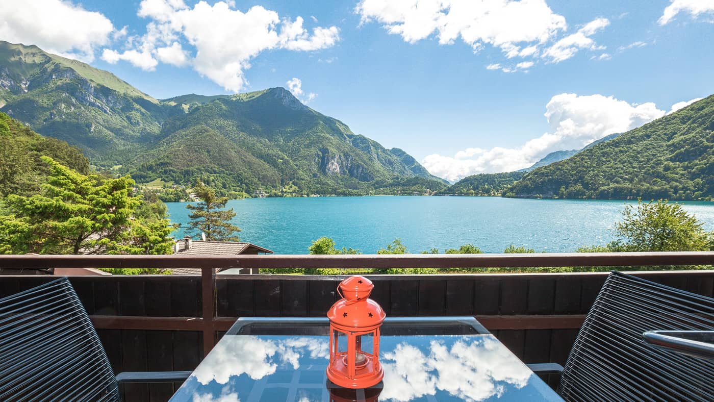 In Italien gibt es neben herrlicher Pasta und Pizza auch sehr authentische Ferienunterkünfte wie Trulli, Weingüter und Agriturismo. Oder eben auch tolle Ferienhäuser und Ferienwohnungen mit Blick auf einen der oberitalienischen Seen. Diese Ferienwohnung für fünf Personen am Ledrosee ist geschmackvoll und gemütlich eingerichtet und hat einen Panoramablick über den See und die Berge.