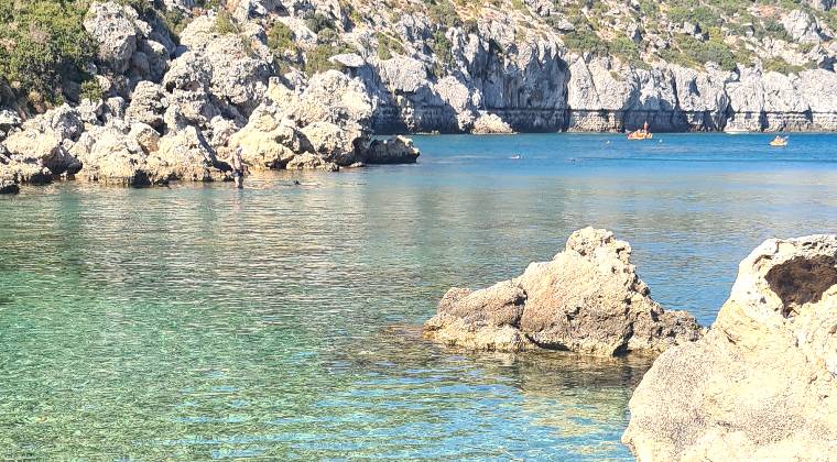 Der nächste Stopp unseres Roadtrips, die berühmte Anthony-Quinn-Bucht, befindet sich etwa eine Viertelstunde Fahrt von Kalithea Springs entfernt.