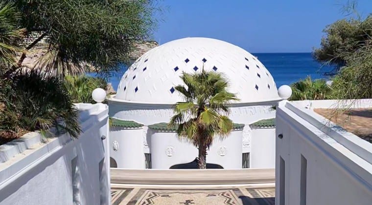 Nach einer aufwendigen Renovierung im Jahr 2007 erstrahlt die zauberhafte Therme wieder in neuem Glanz. Der erste Blick auf die weiße Kuppel, die von Palmen umsäumt ist, steht im starken Kontrast zum dahinterliegendem Blau des Meeres. In der ganzen Anlage ist der Boden mit aufwendigen Mosaiken verziert und der dazugehörige, tropische Garten ist stets gut gepflegt.