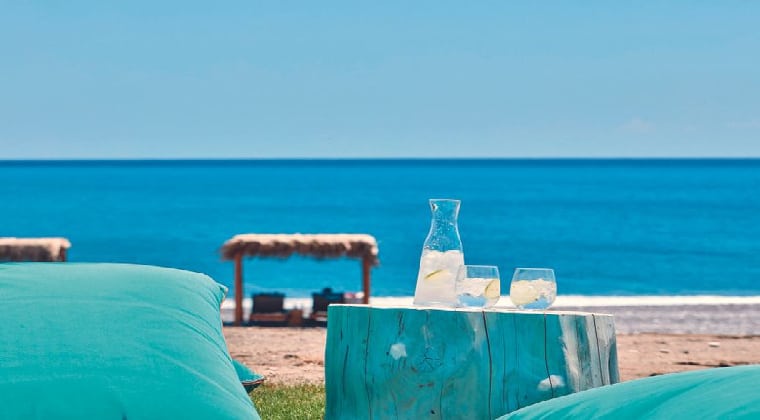 Ein Tipp für den kleinen Hunger: Oberhalb der Bucht befindet sich die süße ,,Kounna Beach & Resto Bar‘‘, wo du Snacks und Getränke bekommst. Die leckeren Salate, Burger und weitere Speisen kannst du mit direktem Blick auf das strahlend blaue Meer genießen.