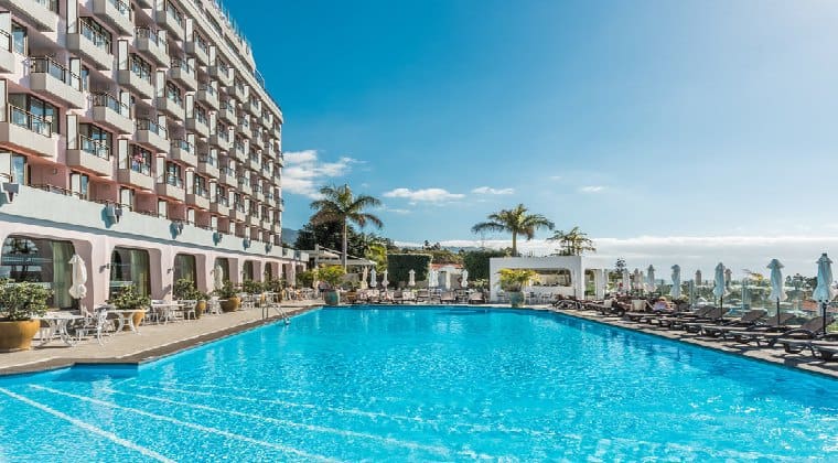 Das 5-Sterne Hotel The Cliff Bay in Funchal liegt direkt am Meer und ist nur 2 Kilometer vom historischen Stadtzentrum entfernt. Ein Luxusurlaub für den Gaumen bescheren euch die drei Restaurants, davon eines das Gourmetrestaurant IL GALLO D’ORO, ausgezeichnet mit 2 Michelin-Sternen. Freut euch auf exquisite Spezialitäten und lasst es euch einfach nur gut gehen in eurem nächsten Madeira Urlaub.