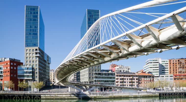 Ein weiteres architektonisches Meisterwerk ist die zwischen 1994 und 1997 erbaute Fußgängerbrücke Zubizuri. In der baskischen Sprache bedeutet das „weiße Brücke“ und sie gilt als schönste Brücke der Stadt. Sie ist ein Werk des spanischen Architekten Santiago Calatrava und begeistert nicht nur durch die Originalität ihrer Struktur. Die geschwungene Form, der weiße Anstrich und der 14 Meter hohe gespannte Bogen machen die Brücke zu einem beliebten Fotomotiv. Von weitem betrachtet scheint die Brücke sogar über dem Fluss Nervión zu schweben. Ihr findet sie nicht weit vom Guggenheim-Museum entfernt und könnt sie für den Weg in die Altstadt oder zur Standseilbahn Artxanda überqueren.
