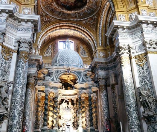 Die Santa Maria Assunta dei Gesuiti wurde 1150 errichtet und 1729 im Barockstil neu erbaut. Die Fassade schmücken korinthische Säulen und biblische Darstellungen, wie u.a. die zwölf Apostel. Beim Betreten der Kirche wird man nicht nur still und andächtig, sondern staunt vor allem über die Schönheit des gold-grünen Altars mit seinen gedrehten Säulen sowie über die gold-weiße Stuckdecke. Ansonsten finden sich im Inneren Grabmäler sowie in den Kapellen und an der Innenfassade ebenfalls Szenen aus der Bibel. Auch der Maler Tintoretto, dessen Spuren sich in Venedig oft wiederfinden, hat sich 1555 in der Kirche mit der „Himmelfahrt der Jungfrau Maria“ verewigt.