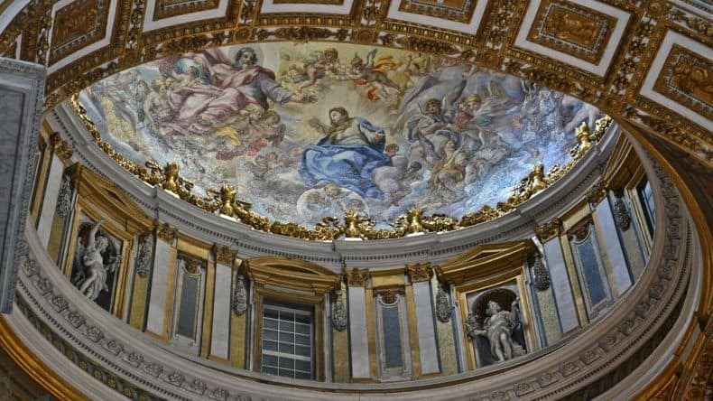 1506 wurde der Dom dann in 120 Jahren mit vielen Pausen und Rückschlägen umgebaut und ist aufgrund dessen durch verschiedene Stile gekennzeichnet. Er gehört auch heute noch zu einem der imposantesten Bauwerke der Welt und bietet als größte katholische Kirche der Welt (211 Meter Länge) Platz für bis zu 60.000 Gläubige. Unzählige Architekten, Bildhauer, Maler und Baumeister verewigten sich hier, u. a. natürlich Michelangelo.