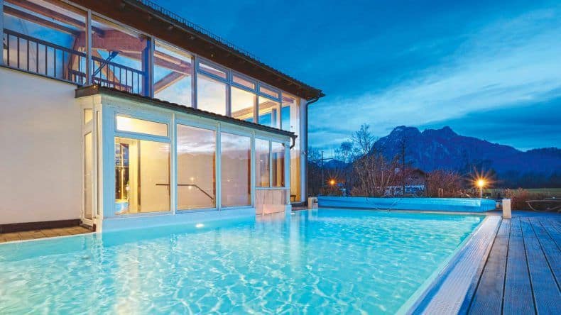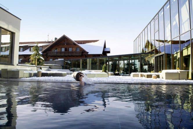 Weihnachten in den Bergen könnt ihr auch im Berghotel Rehlegg im Nationalpark Berchtesgadener Land verbringen. Die Kulisse der bayrischen Alpen, schon vom eigenen Zimmer aus, ist wirklich traumhaft und lässt das Herz jedes Wintersportlers höher schlagen. Tagsüber geht es zur nahe gelegenen Skibushaltestelle, die euch zu einem der vielen, kleinen Skigebiete bringen oder ihr begebt euch auf Ski- oder Wandertour, bspw. durch das Berchtesgadener Land oder nach Ramsau. Auch zum Zauberwald ist es nicht weit. Am Nachmittag steht Entspannung auf dem Plan und es geht ins Almwies’n SPA, auf die Massagebank, ins Hallenbad oder in den beheizten Außenpool, die schöne Aussicht auf die Berge genießen.