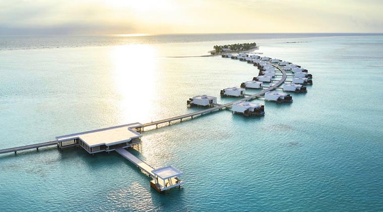 5 Restaurants, ein Infinitypool und das Angebot von Private Dining bieten Luxusurlaub pur. Genauso wie die stilvollen Wasserbungalows, welche 80 bis 112 m² groß sind, ein schickes Daybed bieten sowie einen Plunge Pool. Die riesige, schicke Water Suite wartet mit Außendusche und Private Pool auf.