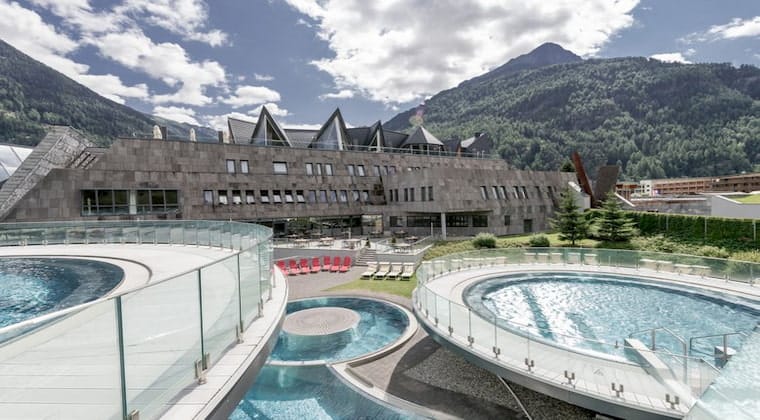 2 Einen fantastischen Ausblick auf 1200 Metern Höhe bietet das wohl beste Wellnessresort der Alpen, das Hotel Aqua Dome in Längenfeld. Das Hotel hat keinen typischen Aquapark, aber einen Spa-Bereich auf über 50.000m² mit 12 Thermalbecken, 7 Saunen sowie Beauty Anwendungen. Es gibt einen Indoor Kinderpool und 2 Wasserrutschen. Ein absolutes Badeparadies für Wasserratten. Hervorragend, der Service war spitze! Das Essen war top. Es hat uns rundum sehr gut gefallen und wir würden jederzeit wieder kommen und es auch Freunden und Bekannten weiterempfehlen.
