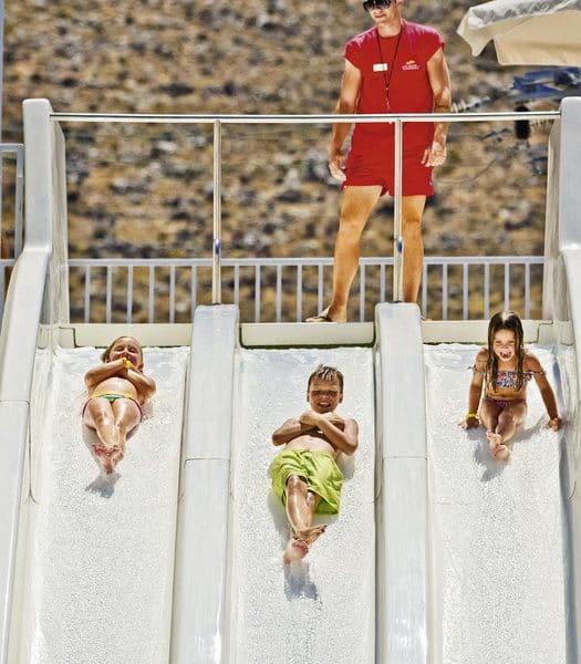 7Im SplashWorld Aqualand Resort auf Korfu erlebst du ein wahres Badeparadies. Vom Hotel aus hast du direkten Zugang zum Aquapark und staunst hier über den drittgrößten Wellenpool der Welt mit bist zu 2,2 Meter hohen Wellen. Viele, viele Wasserrutschen, hohe Wellen – ein Riesenspaß in der bunten Badewelt! Im Übrigen haben alle SplashWorld Hotels einen eigenen Wasserpark, womit die Suche nach Hotels mit Rutschen eindeutig erleichtert wäre. Bester Poolbereich für alle Pool Fans mit Wellenbad und 50 verschiedenen Rutschen. Kinder kommen voll auf ihre Kosten.