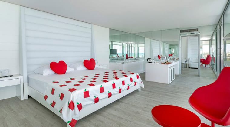 Direkt am hoteleigenen Sandstrand liegt das Adults-Only Hotel der Superlative. Hier erwartet dich ein außergewöhnliches Design gepaart mit puristischer Atmosphäre. Für Verliebte hat sich das Adam & Eve was die Unterkunft betrifft, etwas ganz besonderes einfallen lassen: das Romantic Couples Design Room. Romantik pur!
