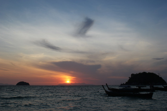 Erschöpft, zufrieden und mit vielen tollen Urlaubsfotos im Gepäck sitzen wir an unserem letzten Abend in Thailand am Oststrand von Koh Lipe und genießen den Sonnenuntergang über der in der Ferne liegenden und zu Malaysia gehörenden Insel Langkawi – dem nächsten Ziel auf unserer Reiseroute.