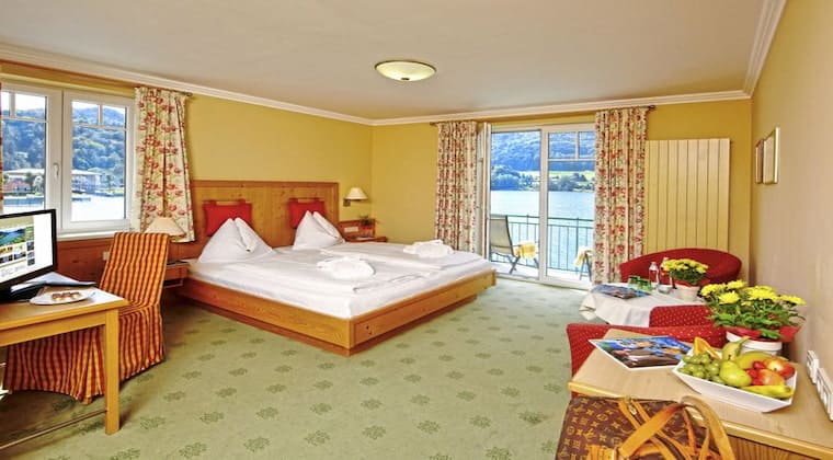 Stellt euch vor, ihr wacht morgens auf und schaut direkt auf den schönen Fuschlsee. Die gemütlichen Zimmer im Hotel Seerose mit Seeblick machen es möglich. Und wenn ihr morgens gerne eure Bahnen im beheizten Pool schwimmt, auch dabei genießt ihr durch das große Panoramafenster im Hallenbad einen wunderbaren Blick. Im Sauna- und Wellnessbereich könnt ihr so richtig entspannen und die Seele baumen lassen.