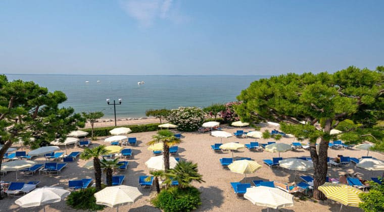 Ruhig und direkt am wunderschönen Gardasee liegt das Hotel Du Lac & Bellevue****. Zum Sonnenbaden eignet sich der Strandabschnitt perfekt. Und wenn ihr gerne flanieren wollt: entlang der Seepromenade könnt ihr schlendern und bei einer leckeren Kugel Eis auf den vielen Bänken das bunte Treiben beobachten. Urlaub am See kann so schön sein!