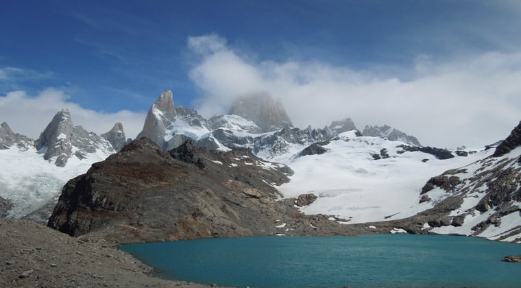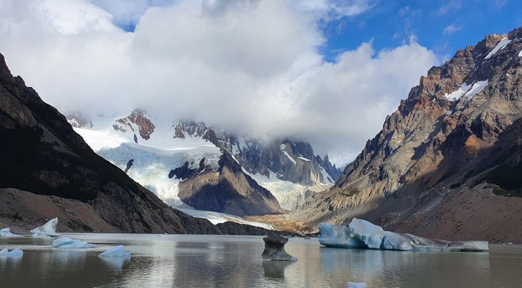 Mit dem Bus fahre ich in Richtung Norden, wo das Dorf El Chalten liegt. Hier bleibe ich drei Tage, um zu Fuß die Anden zu erkunden. Der Nationalpark Los Glaciares reicht bis in diese Region und bietet zahlreiche angelegte Wanderrouten. Sie führen mich nah an die Berggipfel Cerro Fitz Roy und Cerro Torre.