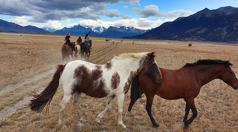 Bevor es für mich weiter geht, unternehme ich einen letzten Tagesausflug in der Region. Um auch das Landleben der Argentinier kennen zu lernen, besuche ich einen der vielen Bauernhöfe, die Estancia Río Mitre. Bei einem von Gauchos geführten Ausritt mit Pferden bestaune ich die weite Steppe. Ich sehe grasende Rinder, an mir vorbei galoppierende Wildpferde und hier und da mal einen Fuchs, der an kargen Büschen vorbeischleicht. An einem der Büsche steige ich vom Pferd ab.