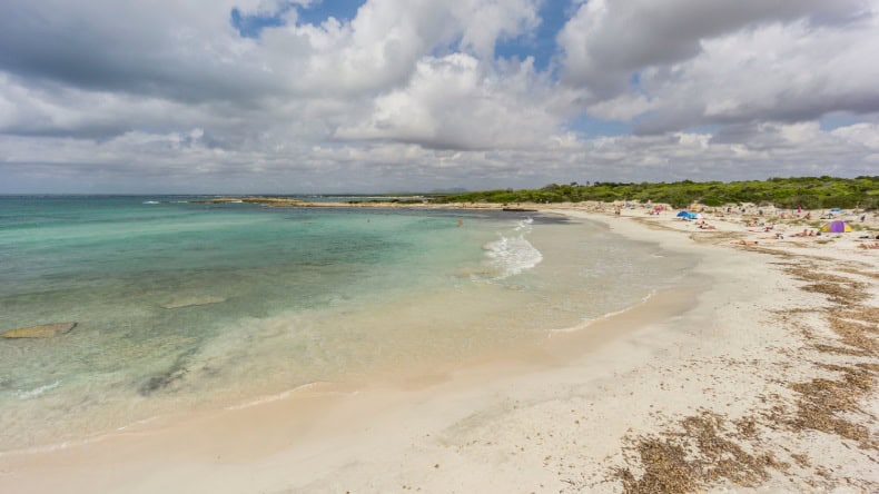 Mallorca, die Lieblingsinsel der Deutschen. Einen der besten FKK-Strände auf der Baleareninsel findest du zwischen den Stränden Es Trenc im Norden und D’es Moli de s’Estany im Süden, etwa 50 Kilometer südöstlich von Palma. Der naturbelassene Sandstrand Playa Es Pregons Grans am Mittelmeer ist etwa 200 Meter lang und 25 Meter breit. Abseits des Trubels der vielen vollen Stränden auf Mallorca kannst du hier deinen Urlaub ungestört genießen ☝. Der Pinienwald im hinteren Bereich des Strandes, der mit seinen Wurzeln die Dünen festigt, bietet dir im Sommer zahlreiche Rückzugsmöglichkeiten.