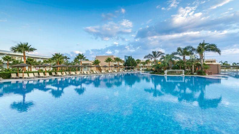 Mit seiner riesigen Aqualandschaft ist das Blue Lagoon Resort ein Hotel für wahre Wasserratten. Über 5 Pools finden sich auf dem großen Gelände, darunter ein Kinderpool, ein Indoorpool und zwei Pools ausschließlich für Erwachsene. Sonnenschirme, Badetücher und Liegen sind kostenfrei erhältlich. Außerdem begeistert es mit seinem Wasserpark und den tollen Wasserrutschen sowohl die kleinen als auch die großen Gäste. Auch sonst überzeugt das Blue Lagoon Resort mit seinem sehr vielseitigen Angebot von Tennis und Boccia über Minigolf und Billard.