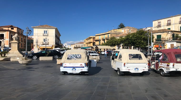 Besondere Plätze: Piazza della Reppublica – hier pulsiert das Leben. Der Platz bildet den Mittelpunkt der kleinen Stadt. Jeden Donnerstag findet oberhalb des Ortes ein Markt der regionalen Händler statt. Unterhosen, Handyhüllen, Wurst und Orangen – es gibt alles.