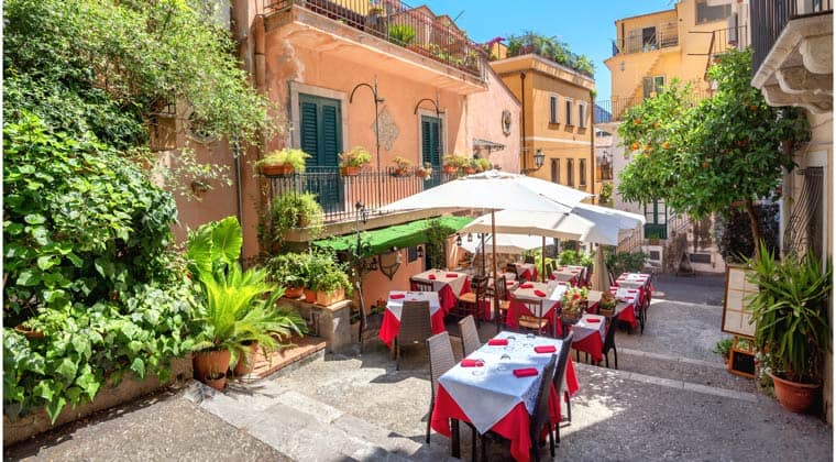 Kleines Cafe in der Altstadt von Taormina. | Shutterstock/Valvery Bareta