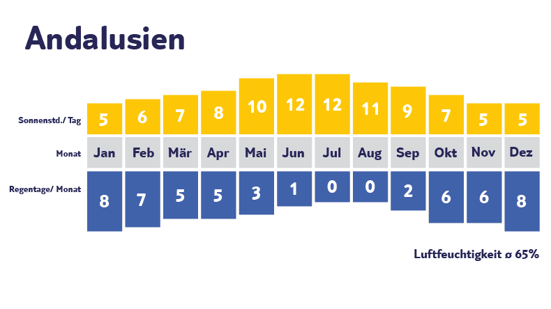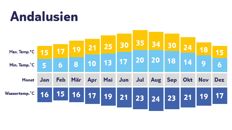 Eventtipp: Im Winter erwarten euch viele spannende Events in Andalusien, wie die Feste zur Ankunft der Heiligen Drei Könige (6. Januar), das Flamenco-Festival von Jerez (Ende Februar bis Anfang März) und der berühmte Carnaval de Cádiz (Ende Februar).