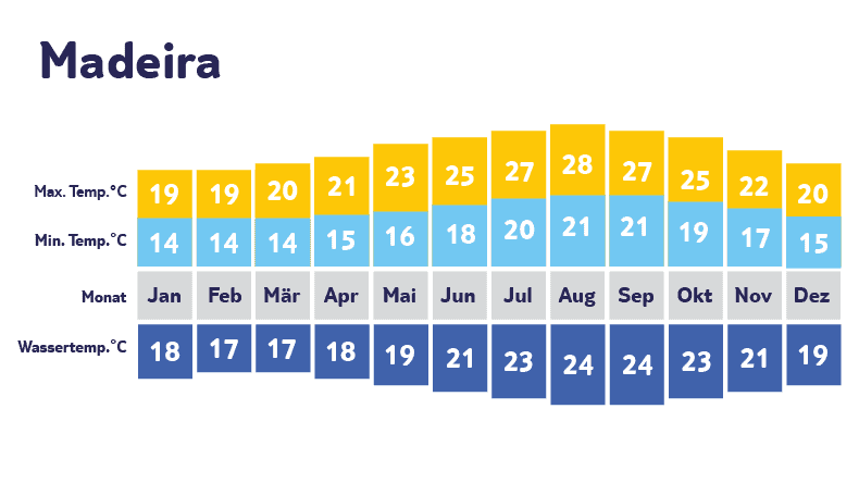 Die portugiesische Insel im Mittelmeer begeistert mit milden Temperaturen das ganze Jahr über. Zwar fällt auf Madeira zwischen November und März deutlich mehr Regen als in den restlichen Monaten des Jahres, allerdings auf eher geringem Niveau. Die ersten Regenfälle im Winter haben hier natürlich auch einen schönen Effekt: Madeiras Vegetation erstrahlt im satten Grün! Die Vorteile, die Blumeninsel im Winter zu bereisen, sind also vielfältig: In der Nebensaison wird es deutlich günstiger; die Touristenanstürme halten sich in dieser Jahreszeit in Grenzen und das Wandern (Madeira gilt als Wanderparadies!) ist bei 19 bis 20 Grad deutlich angenehmer als im wärmeren Sommer.