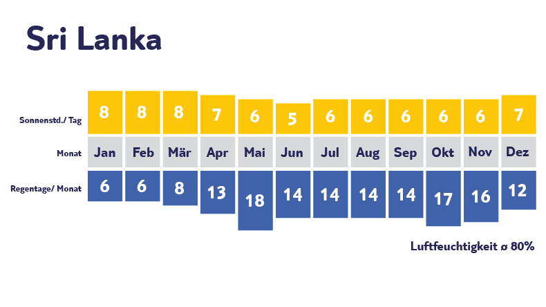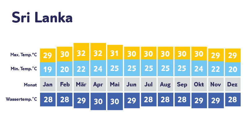 Sri Lanka ist geprägt von verschiedenen Klimazonen, die beste Reisezeit ist daher je nach Aktivität unterschiedlich. November bis März gilt allerdings als beste Reisezeit, um den Süden und die Südwestküste Sri Lankas zu besuchen, denn dann herrscht hier trockenes und warmes Klima um die 30 Grad. Die Strände von Unawatuna, Mirissa und Hikkaduwa sind perfekt zum Entspannen, Schwimmen und Surfen. Das ist auch die ideale Zeit zum Whale Watching in Mirissa. Gesundheitsbewusste reisen im deutschen Winter nach Sri Lanka für eine Ayurveda-Kur. ► TUI Mitarbeiterin Sabine berichtet euch hier von ihrer Ayurveda Reise.