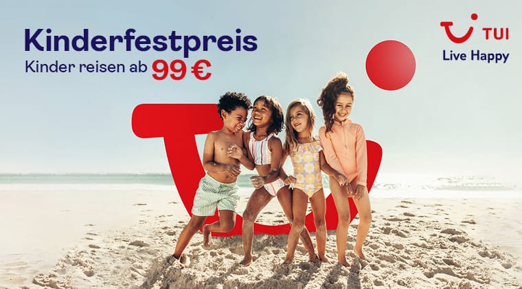 Kinderfestpreis, was ist das eigentlich? Der Name sagt es schon, mit dem TUI Kinderfestpreis reisen Kinder im Alter von 2 bis 12 Jahren für einen Festpreis ausgewählte Hotels – egal, ob ihr nun 1 oder 2 Wochen Urlaub macht. Mehr zum TUI Kinderfestpreis.