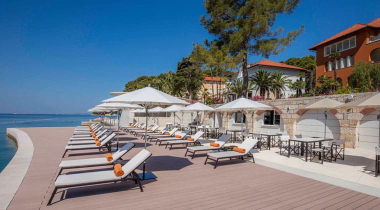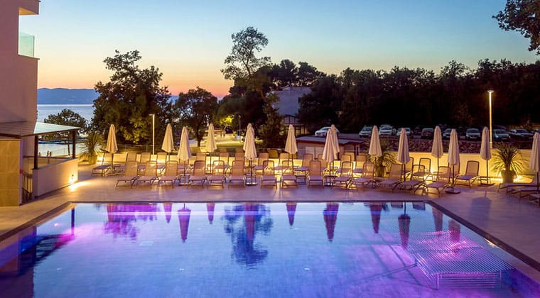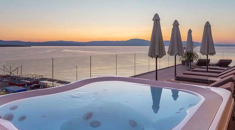 Nur 49 Zimmer hat das Luxury Hotel Riva auf der Insel Krk und ermöglicht euch einen ruhigen Urlaub in besonderer und persönlicher Atmosphäre. Direkt vor diesem kleinen, feinen Hotel beginnt die Strandpromenade mit zahlreichen Cafés und Restaurants und auch den Strand erreicht ihr in nur wenigen Gehminuten.