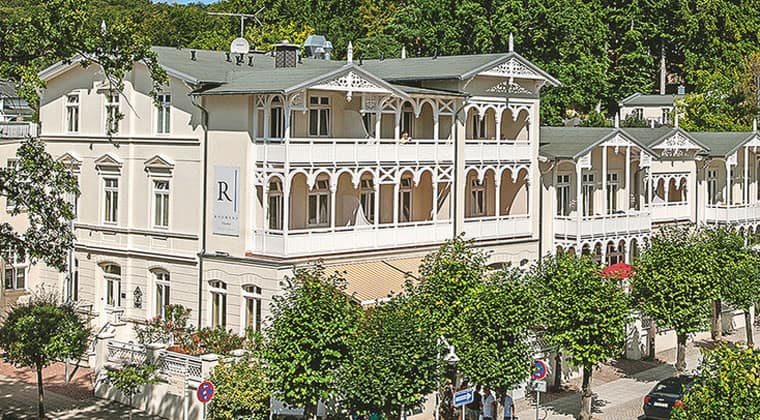 In Sellin auf Rügen erwartet euch diese historische, denkmalgeschützte Unterkunft, bestehend aus fünf Villen im Stil der wilhelminischen Bäderarchitektur. Zum Romantik Roewers Privathotel gehört auch eine parkähnliche Gartenanlage mit viel Platz zum Entspannen.